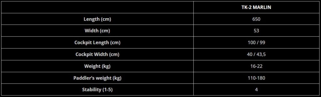 Caiacul de turism TK2 a fost numit după unul dintre cei mai rapizi pești de mare, numit marlin. Barca este neobișnuit de rapidă în categoria sa datorită experienței acumulate cu bărcile noastre de curse HODY, celei mai noi tehnologii utilizate și tradițiilor HODY.